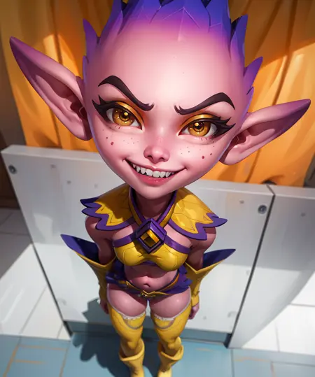 Willow, yellow eyes, - pointy ears, pink skin, if needed