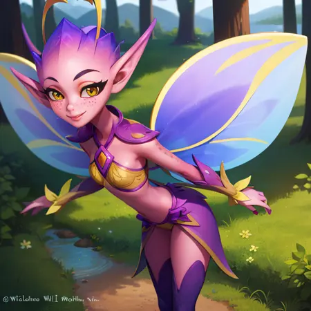 Willow, yellow eyes, - pointy ears, pink skin, if needed