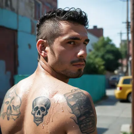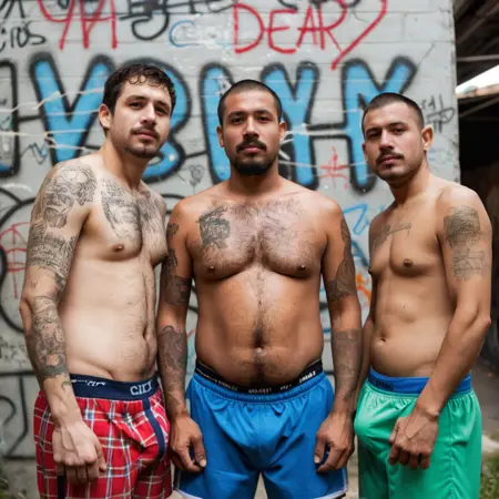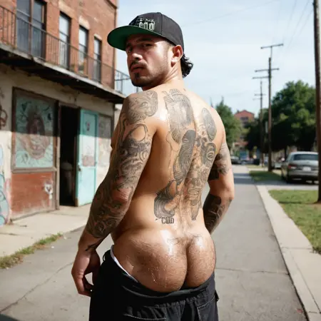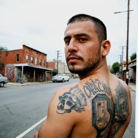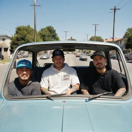 This Lora makes characters look like Latino thugs, specifically Mexican American/East Los Angeles cholo gang culture. It tends to produce characters with darker skin, facial hair, especially mustaches, often adds jewelry, tattoos, necklaces, baseball caps, and baggy clothes with the waistband of underwear showing by itself. Sometimes lowrider cars will appear in the background and often produces palm trees, sunny weather, or a dreary concrete landscape by default.