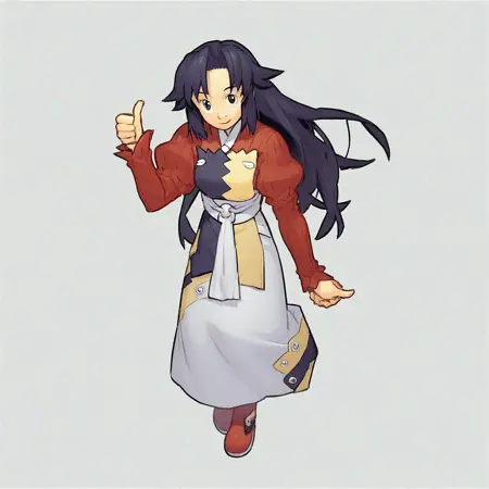 26장의 이미지(공식 아트 5장, 엔딩 슬라이드 1장, 나머지 팬 아트)로 학습됨. 이 시리즈의 많은 캐릭터들(특히 PS1 게임들)처럼, 캐릭터들의 아트는 쉽게 찾을 수 있지만, 의외로 솔로 아트는 거의 없습니다. 특히 클라레트의 하반신, 나아가 신발이 드러난 아트는 극히 부족했습니다. 이러한 제한과 기이한 복장에도 불구하고, 두 번째 에포크 시점에서 이미 꽤 가까운 결과를 얻어 놀라웠습니다. 치마 아래 부분이 제대로 표현될 줄은 상상도 하지 못했습니다. 신발은 예상대로 데이터가 극히 부족하므로 생성되기 어려울 것입니다. (음... 이걸로 기사 하나 써볼 만한 아이디어가 떠오르네요.)