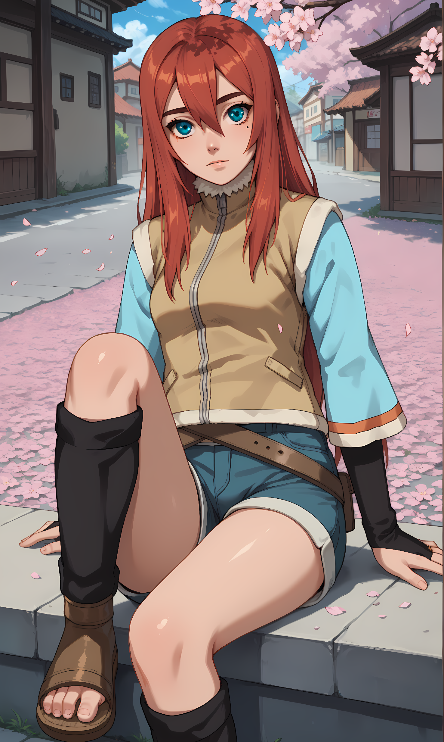 棕色背心,蓝色衬衫,宽袖,长袖,短裤,肘部手套,新娘手套,短裤腰带,露趾腿饰,凉鞋