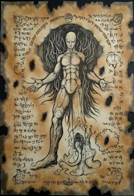 I consider Version 4.0 of the Forbidden Book a different, but not necessarily better, version of the LoRA. Some will like it more, while others will want to stay with v1. This version was retrained with fewer and more closely cropped images, resulting in a LoRA that is much different than v1.0. Though the overall style is the same, v2.0 has more illustrations that aren't quite as otherworldly, and the model focuses more on the images than the script. As a result of the revisions, the model follows prompts better and will generate readable text, but it feels more like an occult tome than a truly unholy book from the abyss.