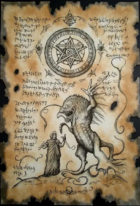 Step into the shadows of arcane knowledge with "The Forbidden Book", a LoRA designed to bring the cryptic pages of ancient, forbidden tomes to life. Inspired by imagined occult manuscripts like the Compendium Maleficarum, Codex Diaboli, and the legendary Necronomicon, this model conjures a style steeped in mystery and darkness.