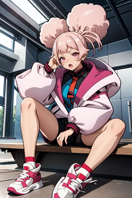 chuchu jacket, puffy long sleeves, shorts, white footwearPilot suit:
