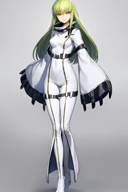 基本プロンプト:1girl, c.c., 前髪, 緑色の髪, 長い髪, 黄色の目