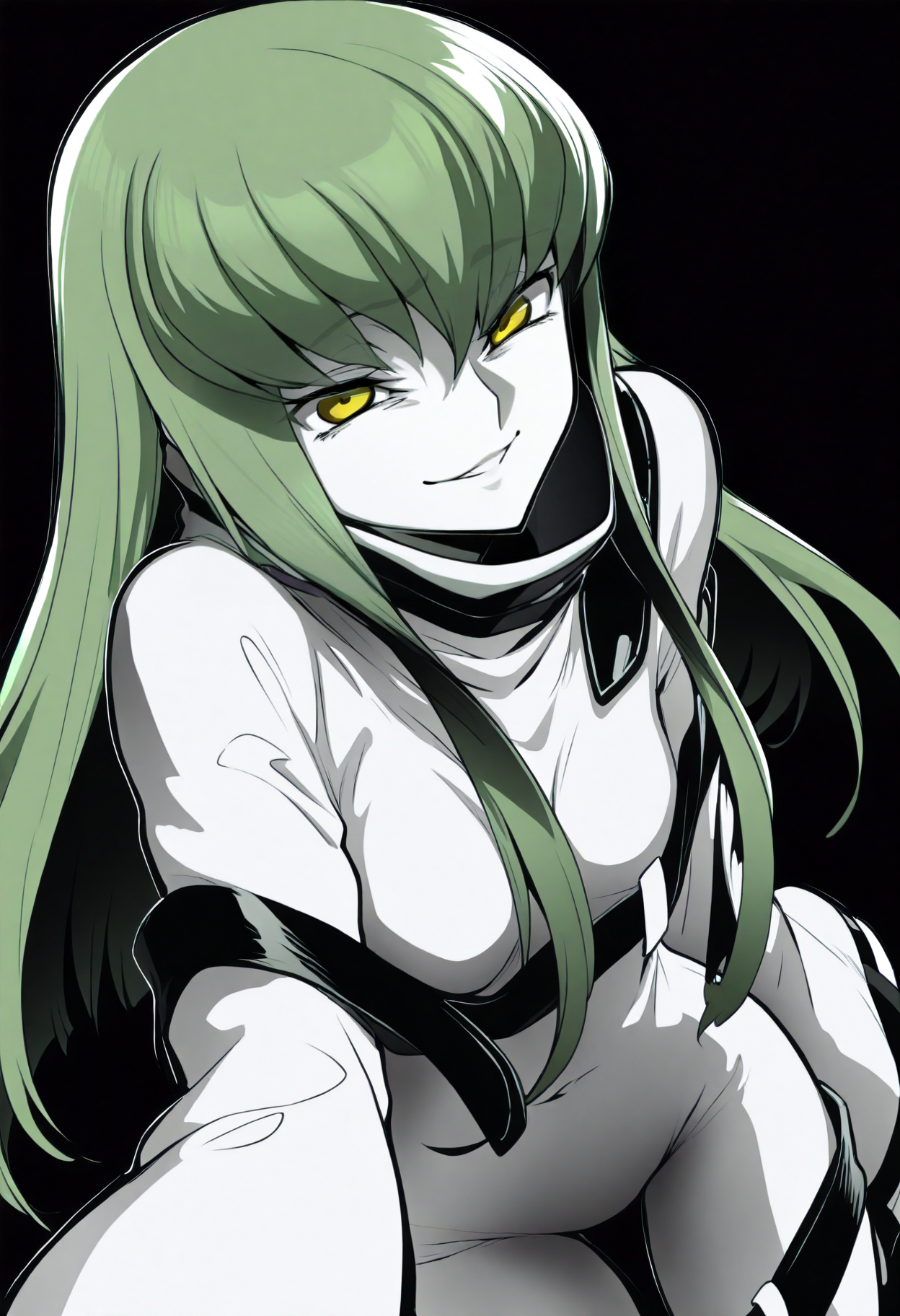 基本プロンプト:1girl, c.c., 前髪, 緑色の髪, 長い髪, 黄色い目