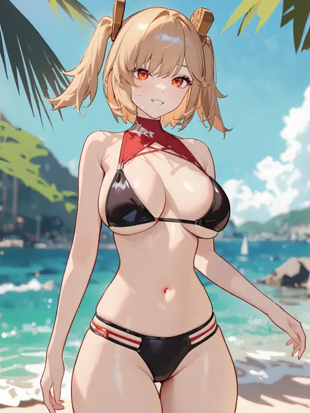 The model was well trained that the default costume can be removed/changed easily even with high lora weight, recommended weight is 0.8~1