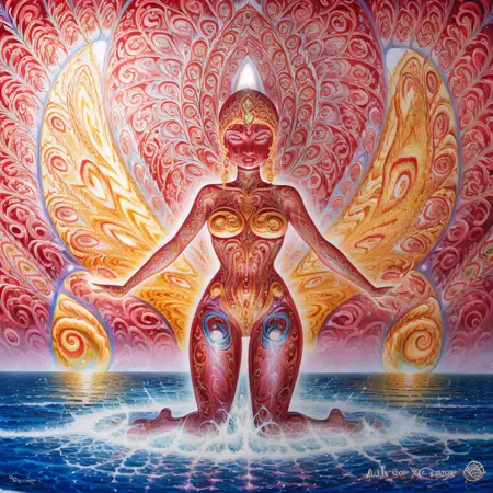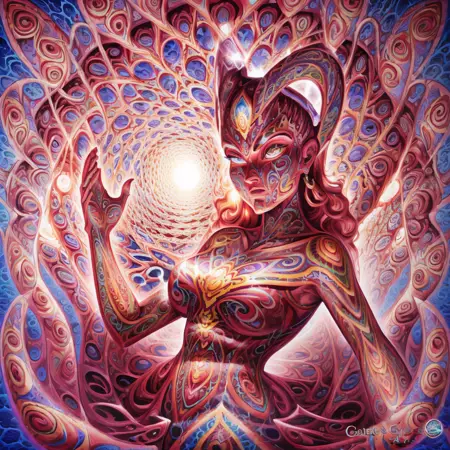 이 LoRA는 알렉스 그레이 스타일의 비전적 예술을 생성합니다. 제가 업로드한 대부분의 이미지는 가중치 1을 사용했지만, 0.2~1 사이에서도 매우 아름답게 나옵니다. 적절한 가중치를 찾아보세요. SDXL 버전은 여기에서 확인할 수 있습니다.