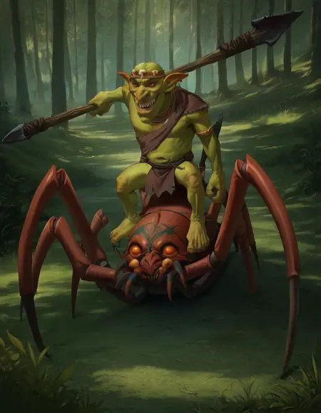 "숲 고블린은 오드 월드의 깊고 어두운 숲에 살며 거미를 숭배하는 고블린 문화이다. 그들은 번개 같은 습격과 무서운 외모로 유명하며, 화려한 깃털, 뼈 조각, 전투 페인트로 자신을 장식한다."