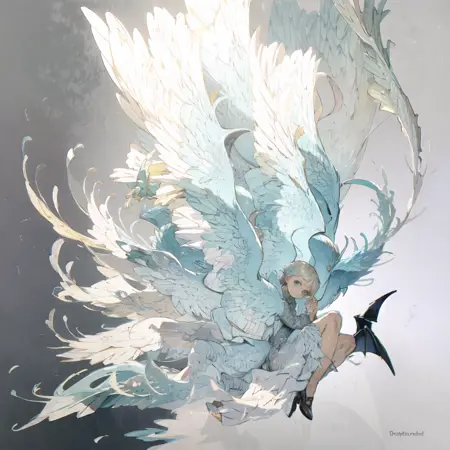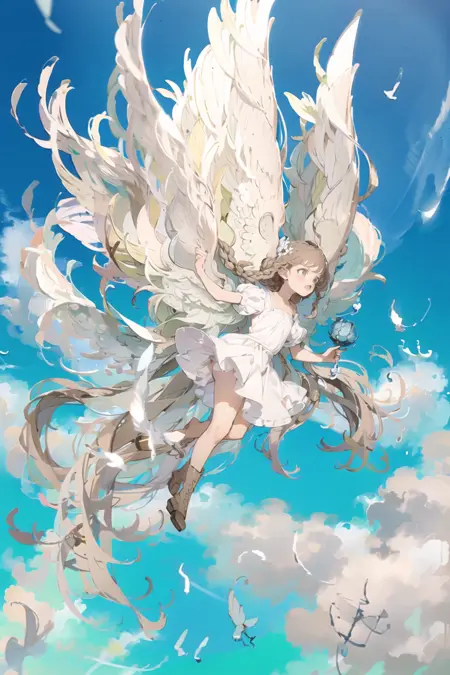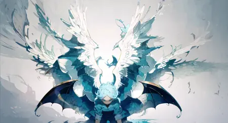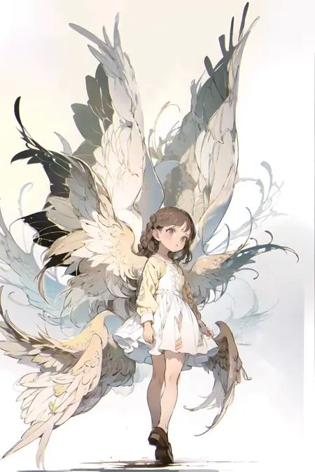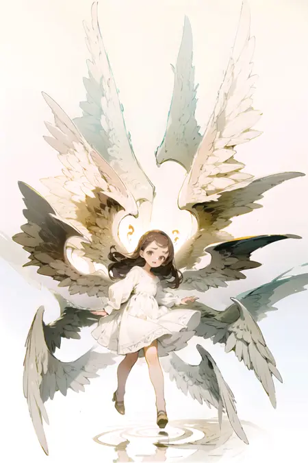 This model can generate massive multiple wings, which can be used alone to generate more traditional Seraphim, or in combination with tags such as "girl" to generate enormous wings behind the character.