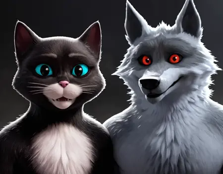 score_9, score_8_up, score_7_up, score_6_up, score_5_up, source_furry, duo, (male with female or 1boy, 1girl or 2boys), anthro, BREAK DeathWolf, grey wolf, ... BREAK KittySoftpaws, black cat, ... BREAK (background)
