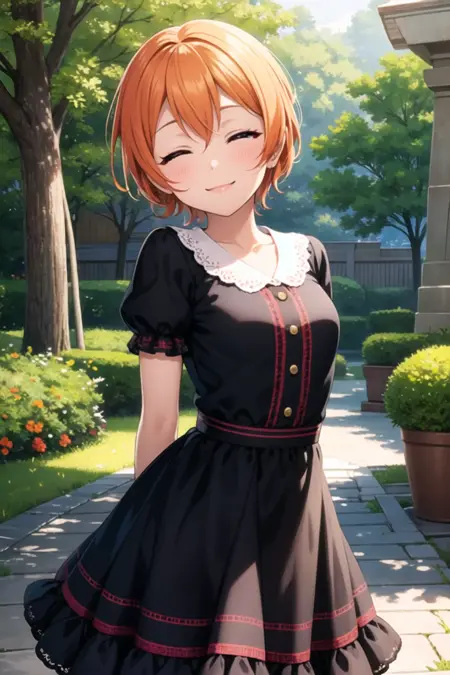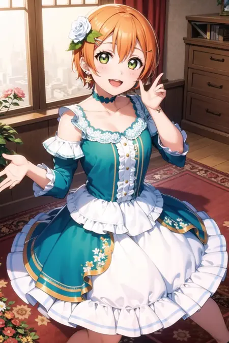 필요한 태그: 1girl, solo, hoshizora rin, orange hair, yellow eyes, short hair,