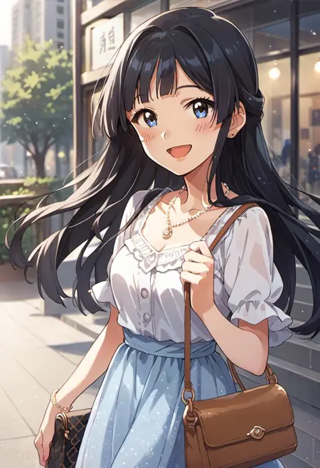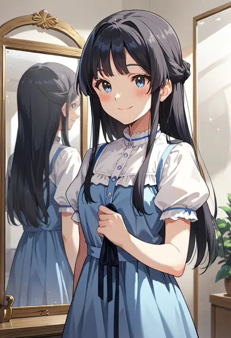 Trigger Words: mogami shizuka, long hair, blue eyes, black hair,