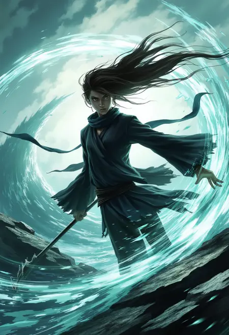 역동적인 일러스트레이션, 레이먼드 스완랜드 스타일로 접근 (다크 판타지, 영화 포스터, 마법 MTG, 과학 소설, 스타워즈 등).