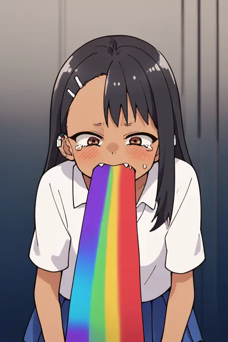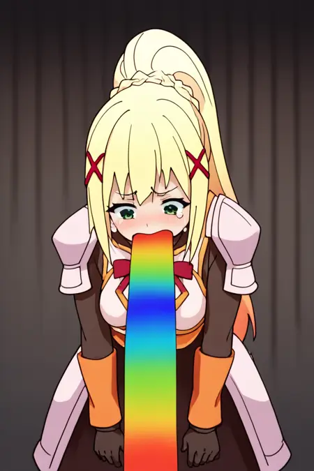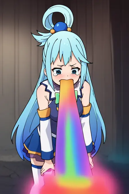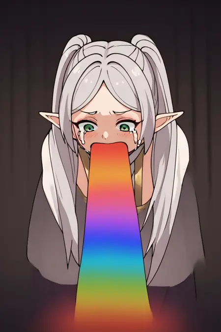 提示1:俯视,前倾,眼泪,厌恶,彩虹,吐出彩虹,呕吐物