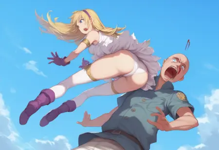 这是一个利用臀部攻击的概念。你可以选择在空中、地面或其他场景中进行这一动作。发挥你的想象力,从多个角度运用它,以满足每个人的需求和偏好。希望你喜欢。作为参考,你可以使用示例参数生成图像,也欢迎尝试其他创意。