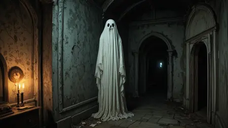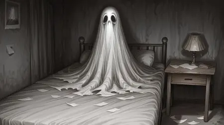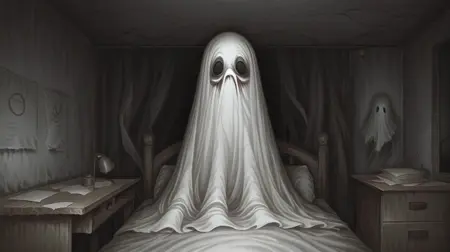 经典的白色幽灵/床单幽灵。可用于简单的可爱插画或恐怖的“写实”风格。