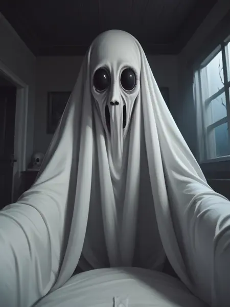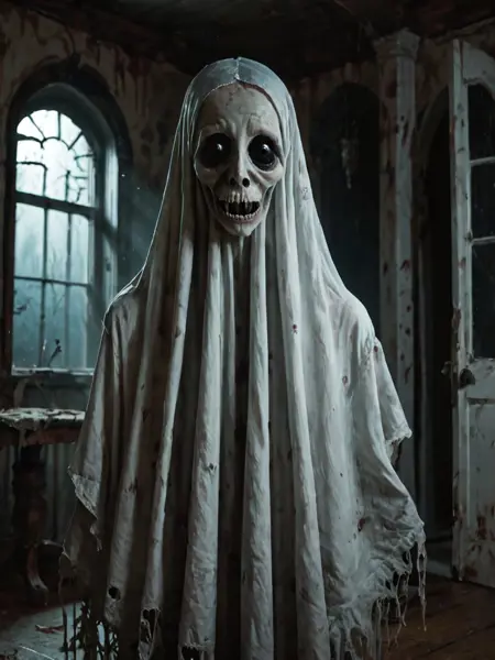 经典的白色幽灵/床单幽灵。可用于简单的可爱插画或恐怖的“写实”风格。