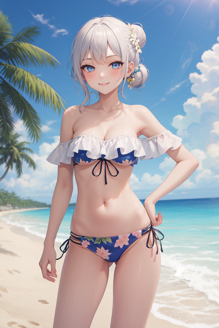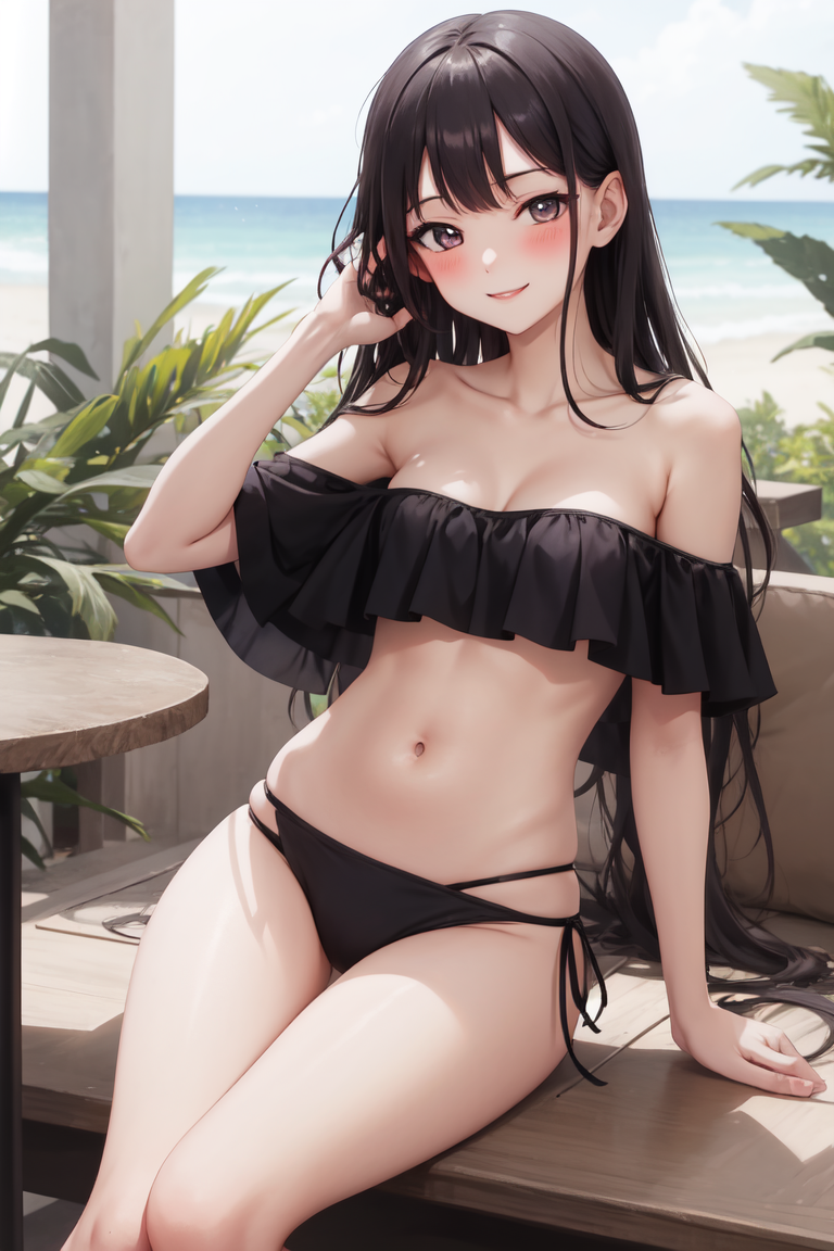色を変更するには、次のように記述できます:「off-shoulder bikini, [色を挿入] bikini」