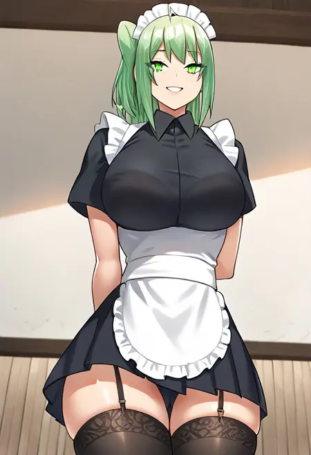 (( lora:ravel:1 , ravel, thin waist, wide hips, beautiful skin, piercing green eyes, clear eyes, bright pupils, beautiful eyes, beautiful green hair, beautiful side ponytail, bangs, huge and shaggy breasts, natural beauty, extraordinary beautiful woman, attractive woman, super sexy woman, lustful body, sexy woman with seductive obscene body, sensual body, voluptuous body, sexy beauty, no piercings, no piercing, ))