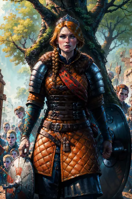 いくつかの不完全な部分がありますが、それらはそのまま残しています(例ではインペイントは一切行っていません)。手の不自然さはより良いプロンプトやネガティブ埋め込みで修正可能ですが、武器の品質は、現時点ではモデルに関係なく大半が不十分です。