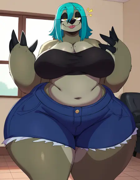 <lora:Nella_sssonic2:0.8>, n3lla, furry sloth:1.2, long sloth claws, blue hair, grey fur, grey body, markings, curvy, slightly chubby, big breasts, wide hips, huge female,