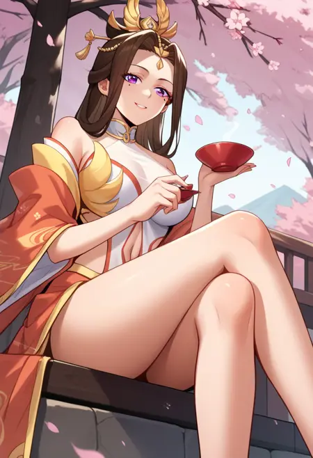 Luo wuqing, Luo dress, purple eyes, mole under eye, brown hair, hair ornament