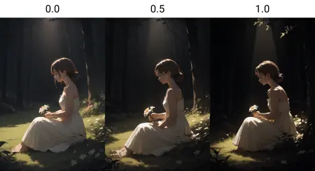 逆光:生成来自角色后方的光线效果,同时也会使角色变暗。我还尝试过与其他标签一起训练,你可以试试,但效果似乎不明显:底光、侧光、仰光、顶光。也许在未来的版本中我会重新考虑这些