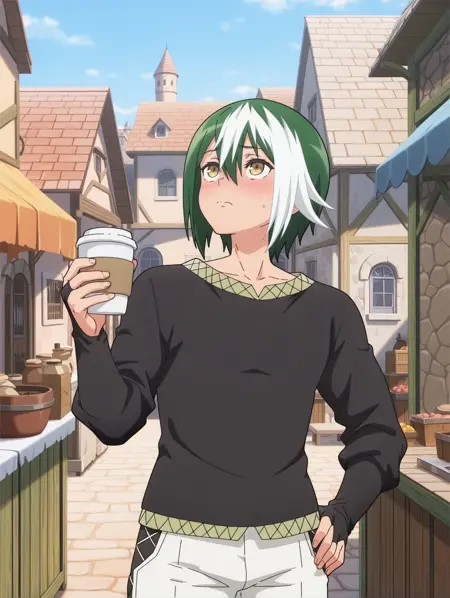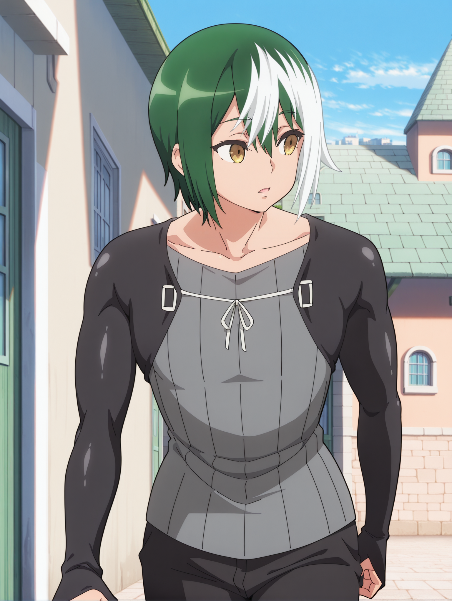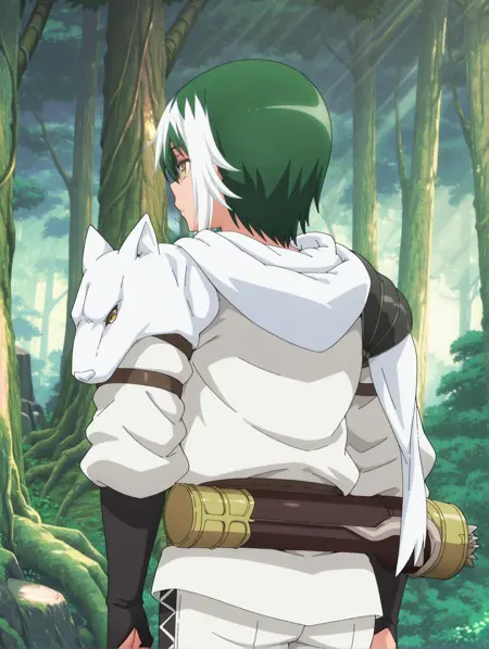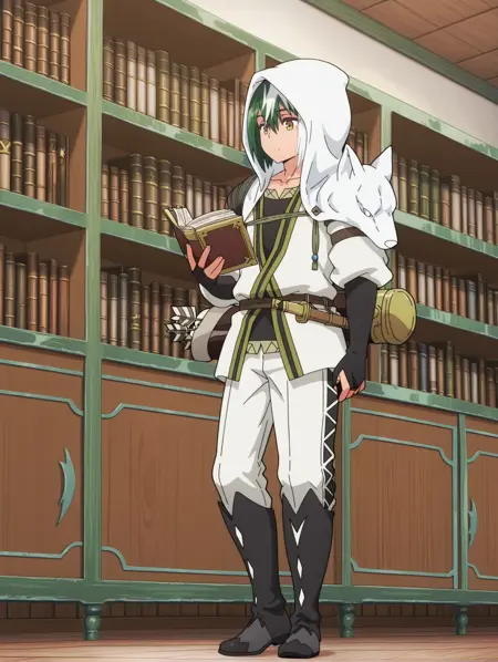 | 训练词汇 | kikuru madan, yellow eyes, short hair, green hair, two-tone hair, white hair, hair between eyes, bangs已复制! hooded jacket, hood up / hood down, white pants, black gloves, partially fingerless gloves, boots, black footwear, belt, holding bow \(weapon\), sheath, arrow \(projectile\), sword, quiver已复制! grey shirt, black sleeves, black pants已复制! black shirt, crew neck, white pants已复制! v-neck shirt, black v-neck, long sleeves, grey pants已复制! japanese clothes, grey black kimono, fishnets已复制! |