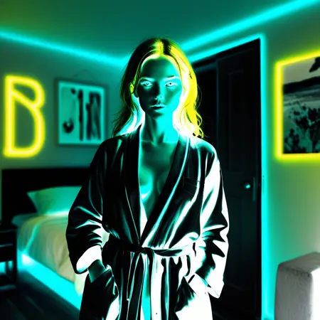 要触发该效果,你需要在提示词中包含某种“发光”概念,例如:“发光光环”、“背光”、“霓虹光芒”等。同时尝试描述特定颜色,如:“红色嘴唇”、“绿色光晕”、“彩虹反射”……你需要进行实验。训练中使用的触发词是“pixeldust”,但它似乎效果不佳,至少单独使用时如此。