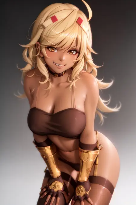 トリガー+外見: mcblaze, dark skin, dark-skinned female, ahoge