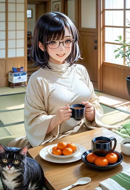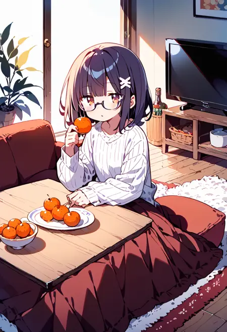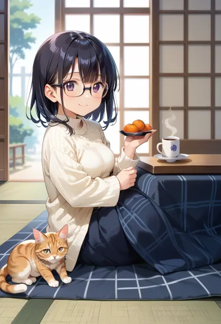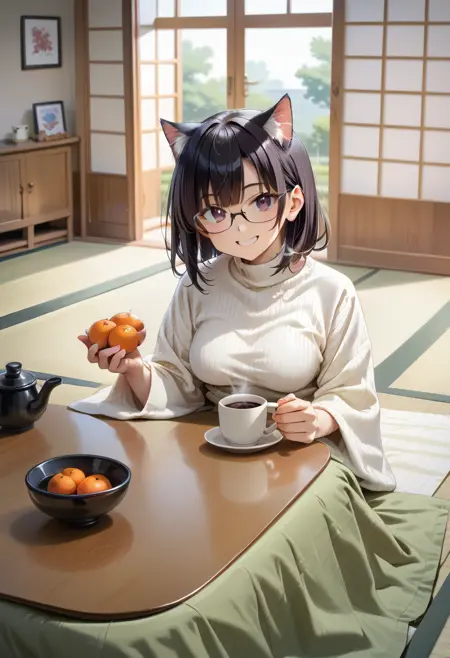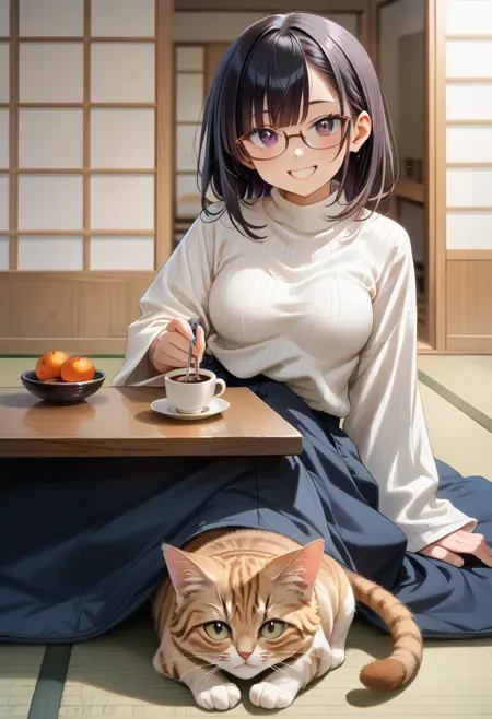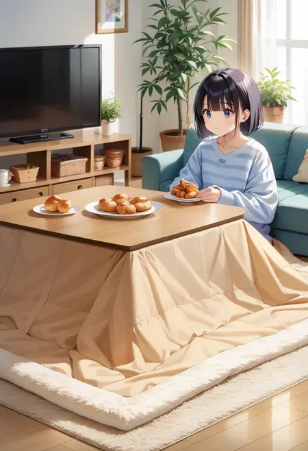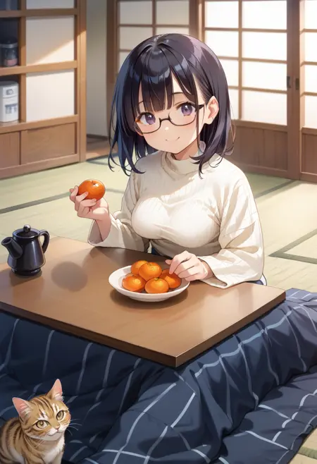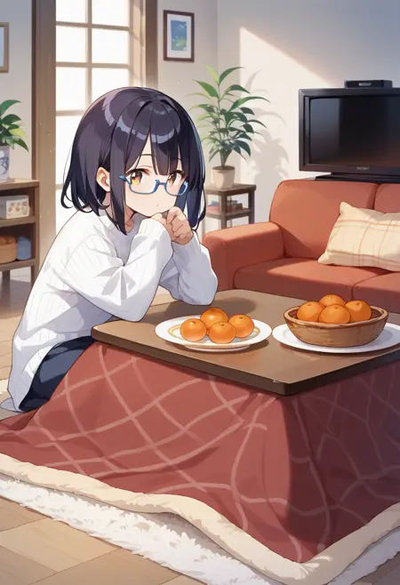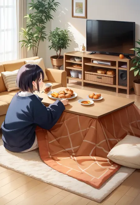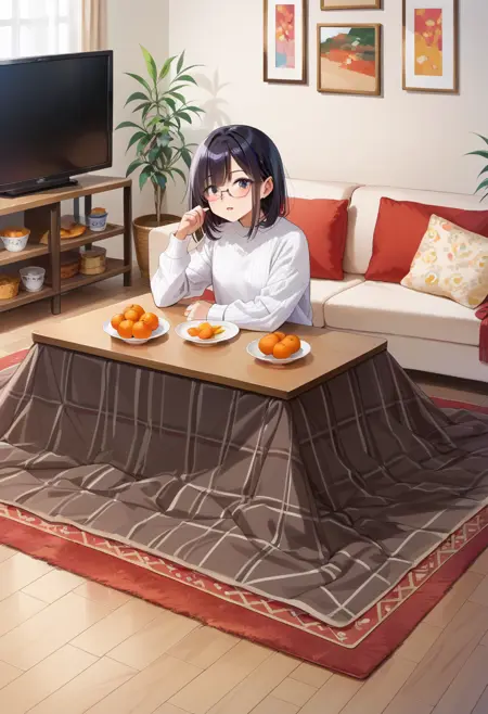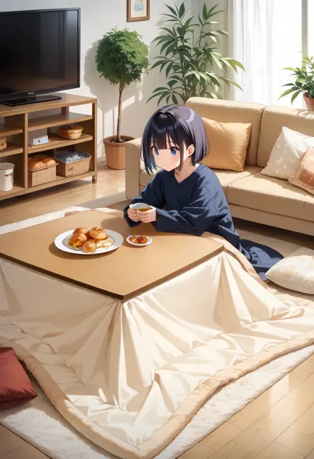 이것은 일본의 겨울 난방기구인 코타츠이 있는 거실 같은 풍경을 그려낼 수 있을지도 모르는 LoRA입니다.