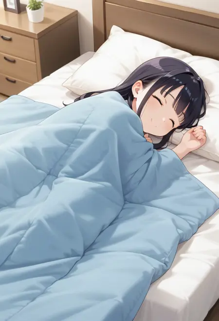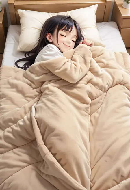 通常在生成睡眠中的插图时,被子不会被画出来。在这个寒夜频仍的季节,如果没有被子,我们可爱的小家伙们会感冒的。我们制作了一个LoRA原型,让它能盖着被子温暖入睡,帮助它获得良好的睡眠。/ 睡眠中のイラストを生成すると掛け布団が描かれない事がよくあります。寒い夜が続くこの季節にお布団がないとかわいいうちの子が風邪をひいてしまいます。良い睡眠を得られるように布団をかぶって暖かく寝られるLoRAを試作してみました。