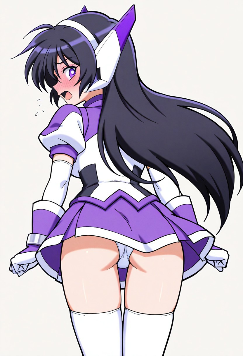 触发词: purpswa, 1girl, solo, black hair, long hair, purple eyes