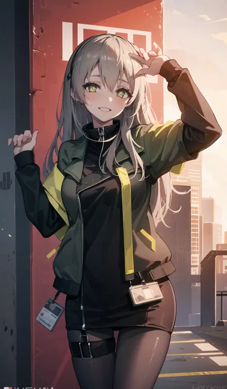 2.OG Costume: id card, green open jacket, shirt, pantyhose