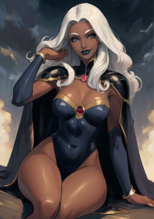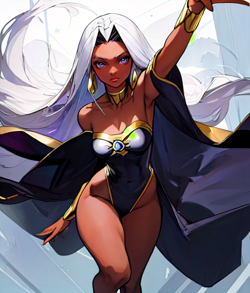 A character LoRA for the comic depiction and 2011 anime depiction of Storm/Ororo Munroe. Does not include her movie appearances.