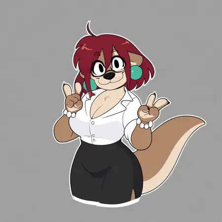 トリガーワード: オタter、フューリーな女性、女性、フューリー、眼鏡、大きな胸、胸元、ペンシルスカート、シャツ、尾、黒い靴、ハイヒール、ブレスレット、イヤリング、