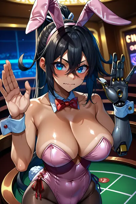 Trigger word is "trpgane" and "black hair, high ponytail, hair between eyes, blue eyes, tan skin" is required.