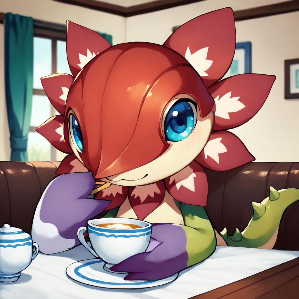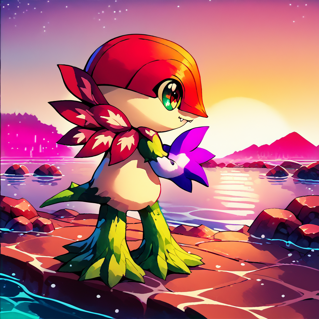 Floramon 是一种植物型数码宝贝。尽管它像爬行动物一样进化,类似于Palmon,但它被归类为植物型中的异常数码宝贝。——数码宝贝维基