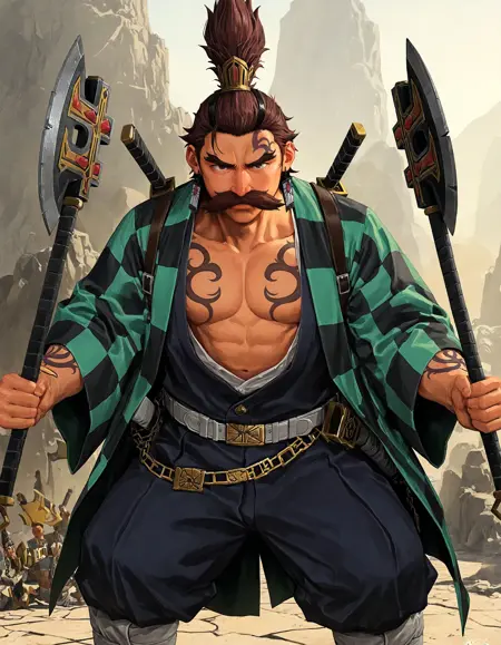 DaemonSlayer, mohawk, tattoo, earrings, muscular,
