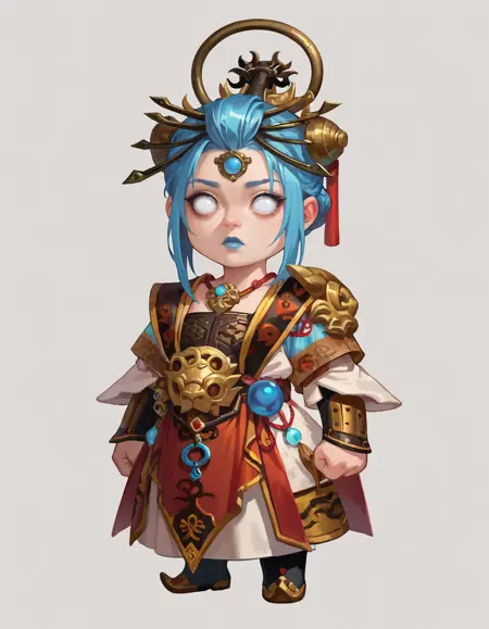 YinYinMortal, white eyes, blank eyes, blue lips, blue hair,