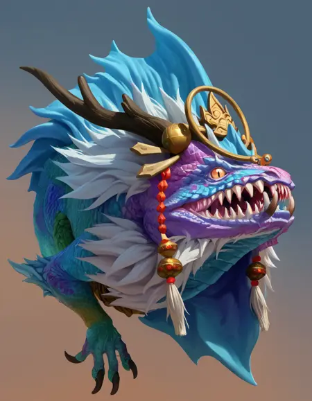 YinYinDragon, monster, no humans, sharp teeth, tail, claws,