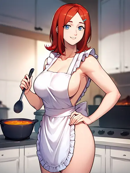 Tags that also help : 1girl, medium hair, red hair, blue eyes, hairclip