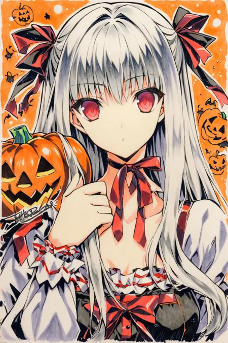 프롬프트 단어 "traditional media"를 사용하면 아티스트의 손으로 그린 마커 스타일 효과를 얻을 수 있습니다.