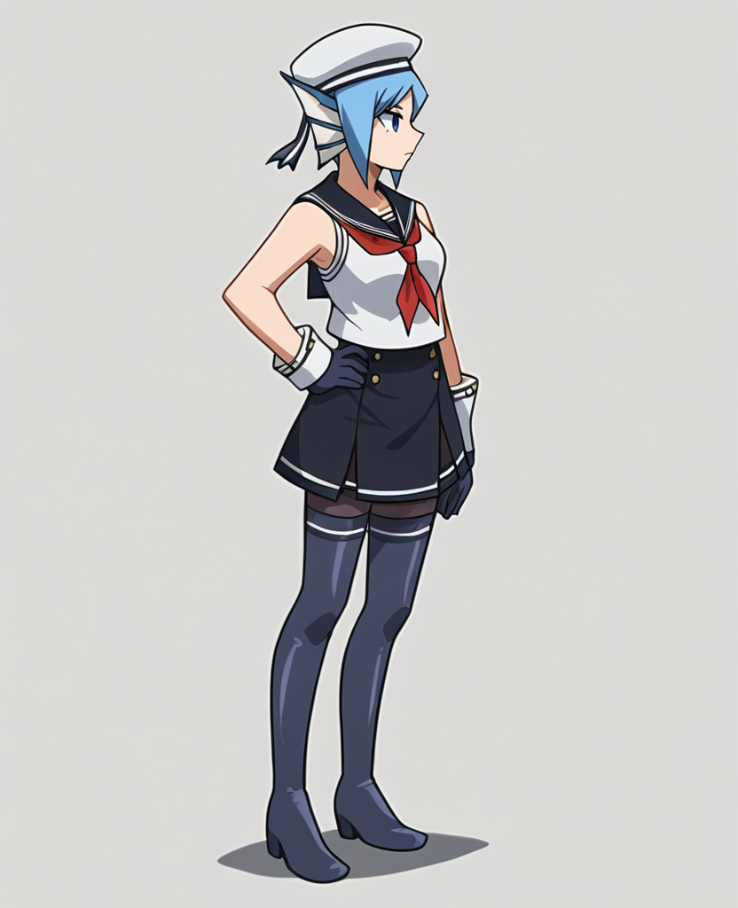 skirt, black thighhighs, sailor collar, boots, neckerchief,