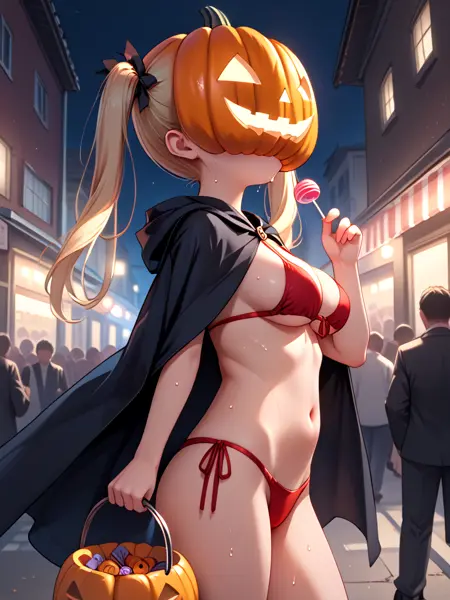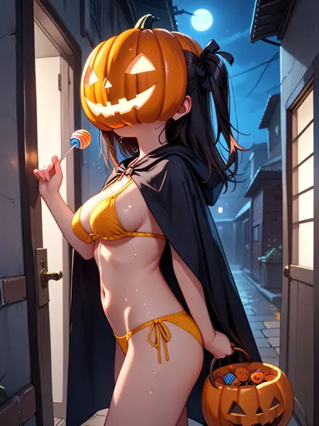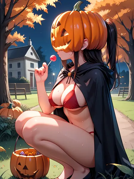 | 학습된 단어 | score_9, source_anime, realistic, glowing, pumpkin head, pumpkin mask, faceless, upper body, 1girl, peeking out, holding lollipop, carrying bucket, parted lips, bikini, thong, black cloak, petite, sweat, skinny, large breasts, thighs, crowd, street, night,복사됨! score_9, source_anime, realistic, glowing, pumpkin head, pumpkin mask, faceless, upper body, 1girl, lying on ground, on back, peeking out, holding lollipop, carrying bucket, parted lips, bikini, thong, black cloak, petite, sweat, skinny, large breasts, thighs, forest, night, knees up, spread legs, from above,복사됨! score_9, source_anime, realistic, glowing, pumpkin head, pumpkin mask, faceless, upper body, 1girl, peeking out, holding lollipop, carrying bucket, parted lips, bikini, thong, black cloak, petite, sweat, skinny, large breasts, thighs, night sky, dark alley, open door, pov doorway,복사됨! |