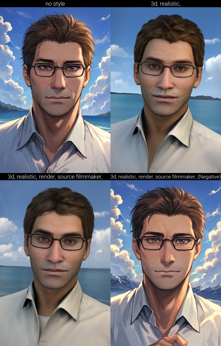 v1.0 – LoRAは30枚の画像(スクリーンショット、公式アート、コンセプトアート、ファンアート、見つけられる限りすべて)で学習されています。画像の多くは3Dですが、モデルは十分に柔軟です。3Dと2Dの両方を作成できます。3Dの場合はプロンプトに**3d, realistic,を追加し、2Dの場合はネガティブプロンプトに3d, realistic,を追加してください。さらに、より強い3D効果を求める場合は、プロンプトにrender, source filmmaker,**も追加してください。
