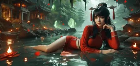 *赤い提灯は緑の雰囲気とのコントラストを生み出すためのコンセプトの一部です。提灯が不要な場合は追加する必要はありません。光の色を変更したり、他の光源に変更したい場合は、LORAの強度を0.8に設定してください。