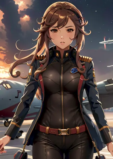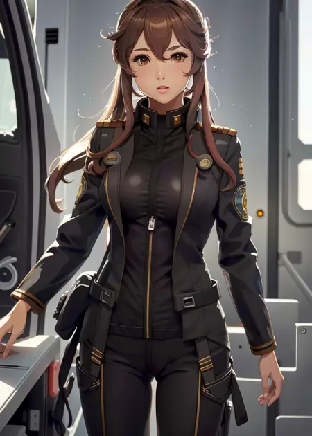 science fiction, military uniform, 1girl solo bodysuit, yamato2199, opened blazer,pants,impossible bodysuit, pilot suit,