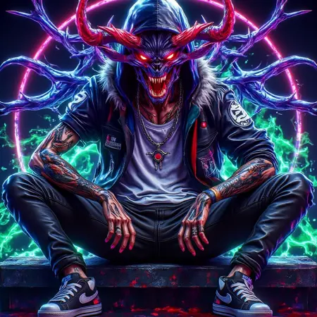 You should use `Neon Mecha-Horror Style` to trigger the image generation.